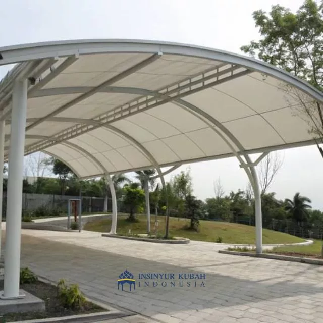 - Membran PVC / PTFE: fleksibel, modern, desain arsitektural unik