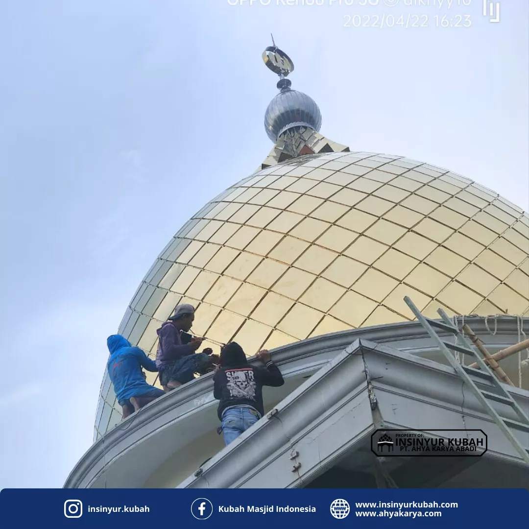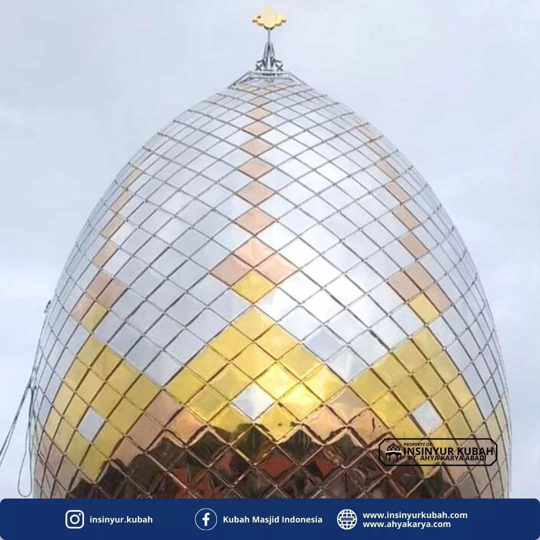 Kubah masjid stainless mirror sangat cocok untuk masjid dengan konsep modern maupun megah, serta menjadi investasi jangka panjang karena daya tahannya yang tinggi dan tampilan yang tidak mudah memudar.